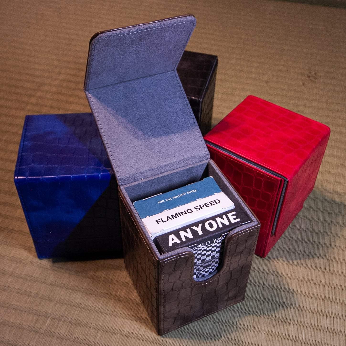 Carry your decks in style with our beautiful snake skin collectors box that stores up to 4 decks of poker sized playing cards (sideways).